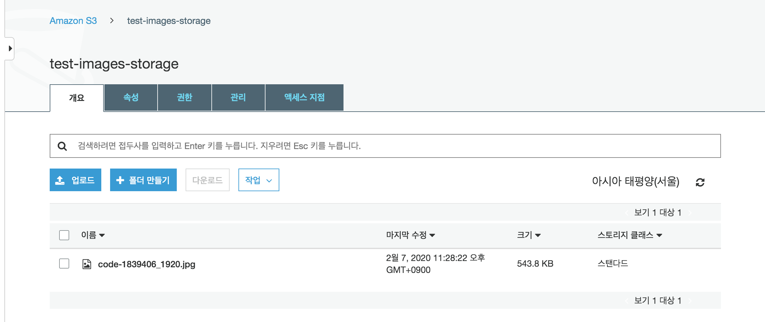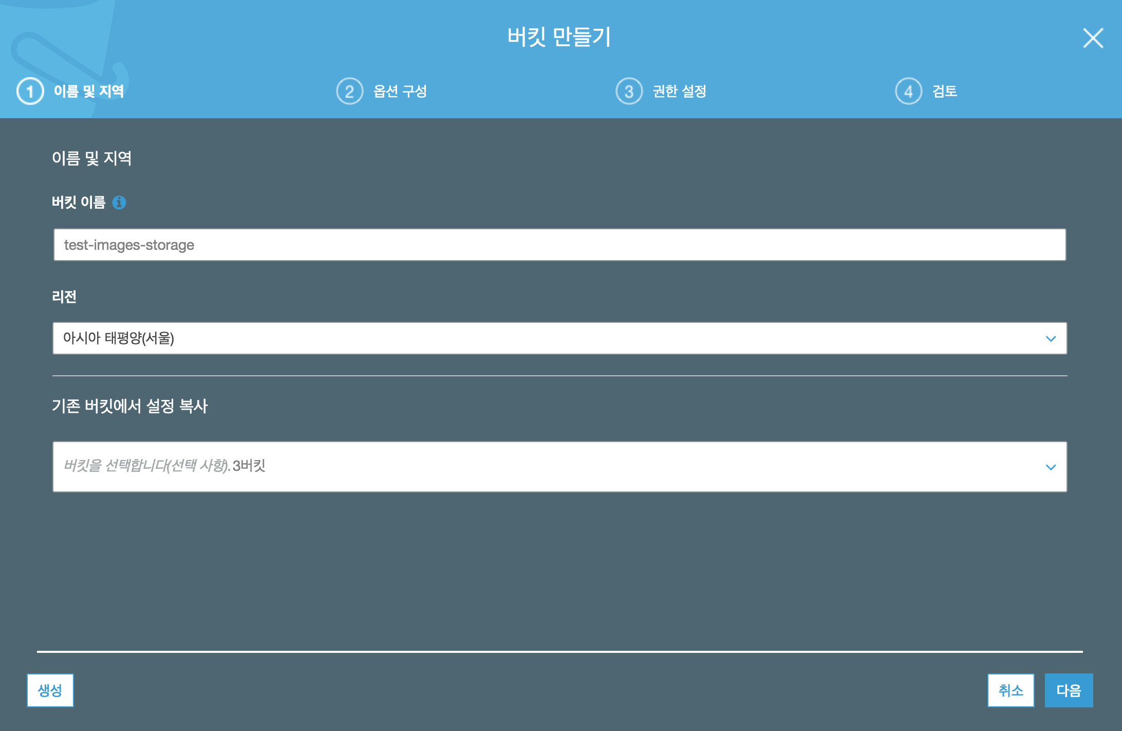 region: "ap-northeast-2" // S3 Bucket Region 명