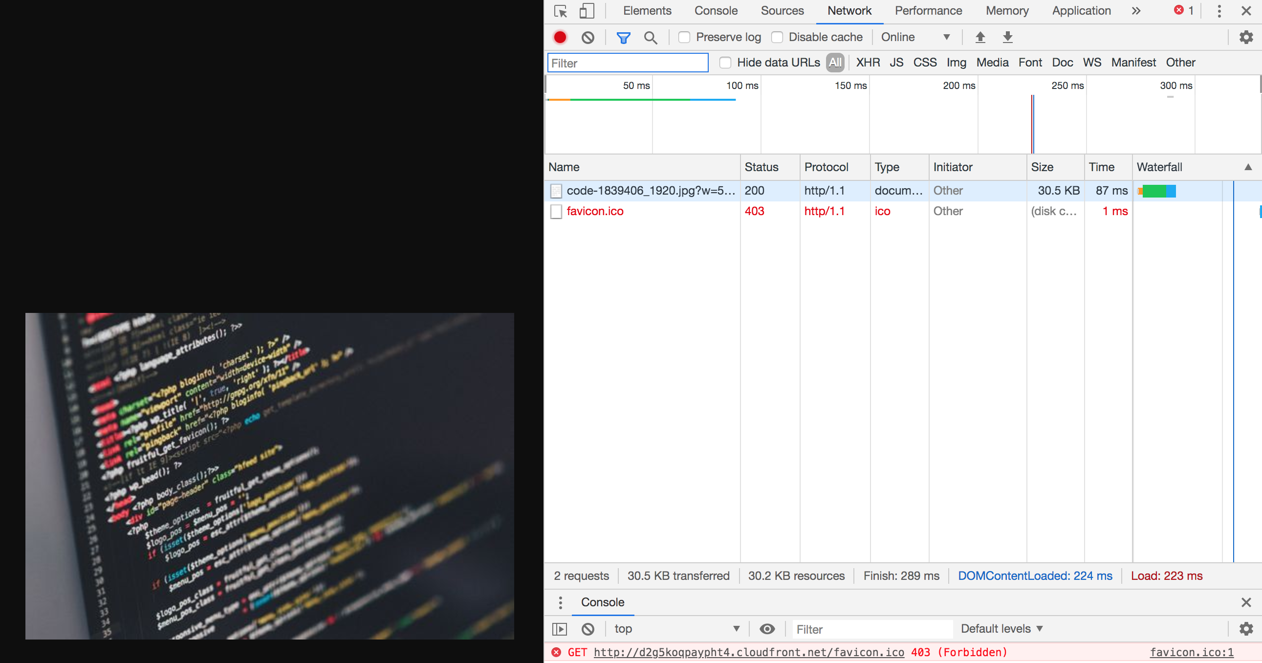 CloudFront에서 제공된 Domain Name으로 S3에 올렸던 파일을 요청 해봤습니다.