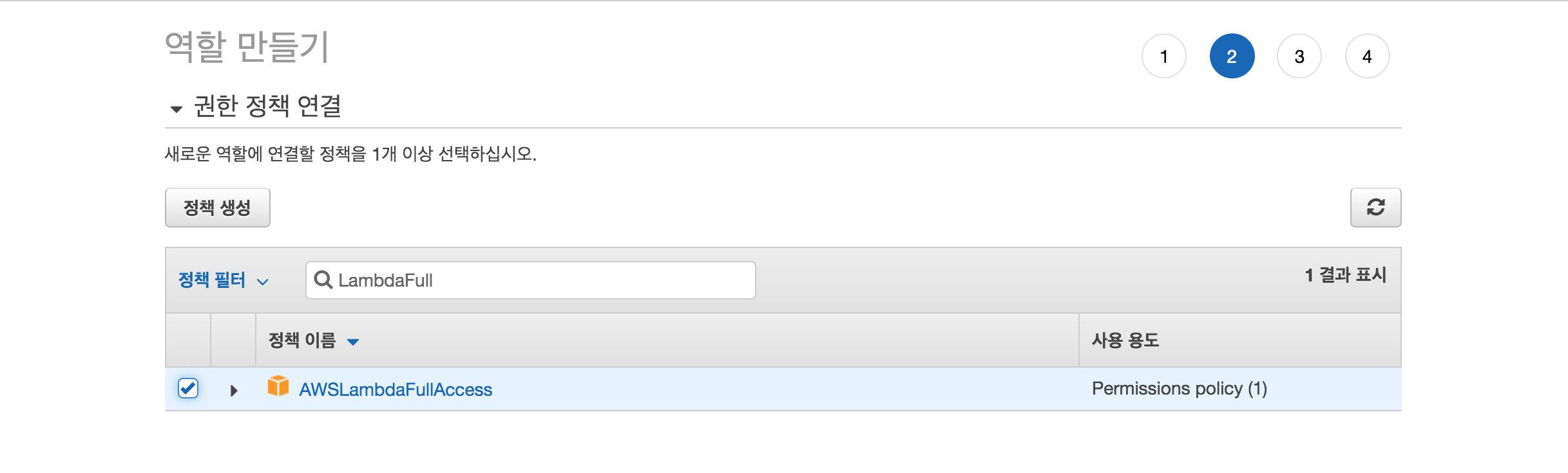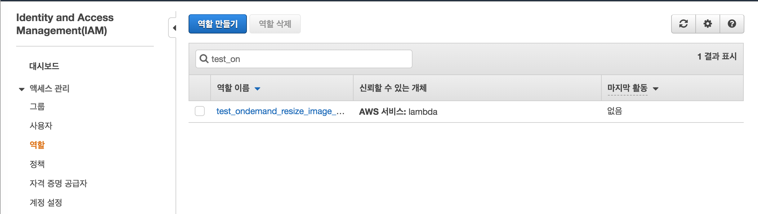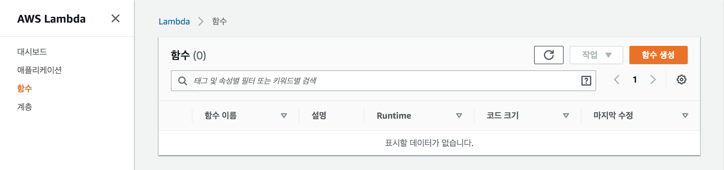 '함수 이름'을 작성 후, 권한에서 맨 처음 만들었던 IAM 역할을 '기존 역할'로 지정해줍니다. 그리고 '함수 생성'을 클릭합니다.