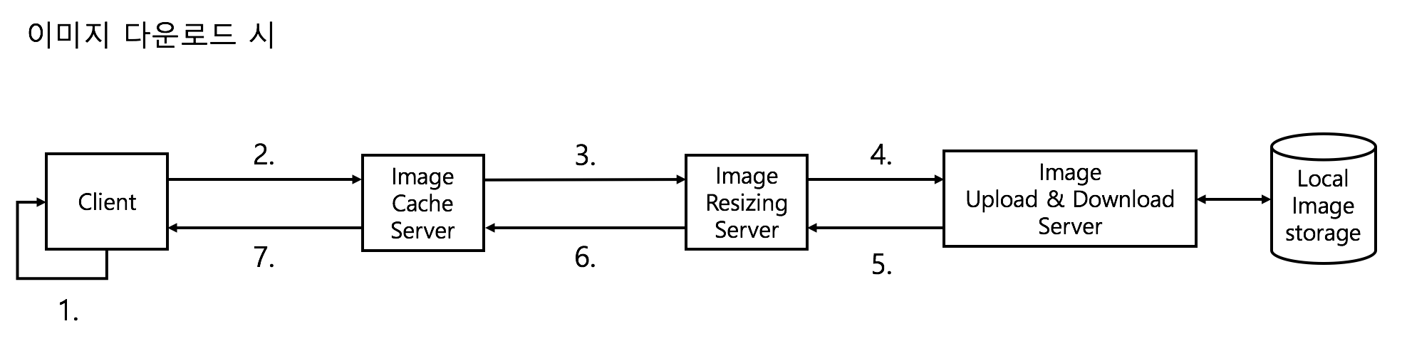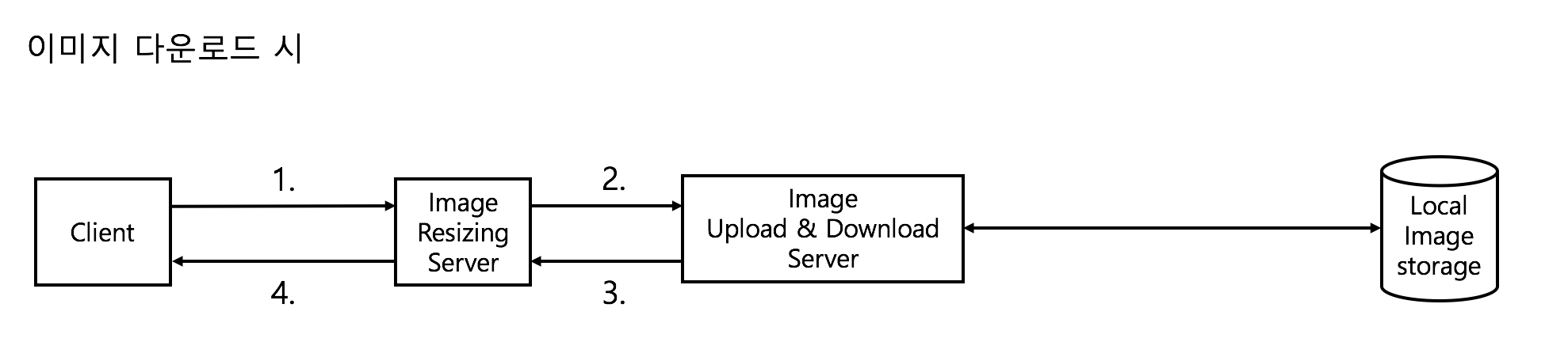 - 이미지 리사이징 서버 : 원본의 이미지를 이미지 이미지 스토리지에서 가져와서 리사이징한다.