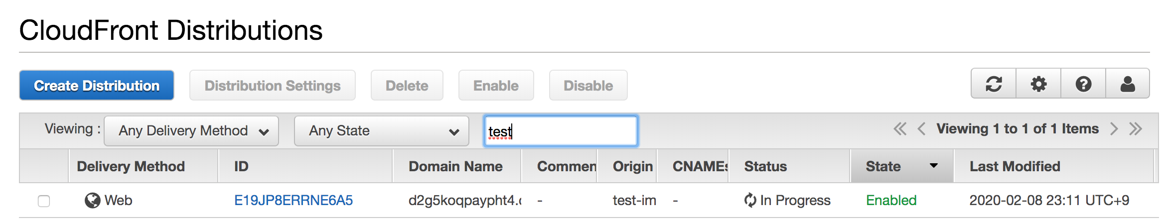 CloudFront로 돌아가면 'In Progress' 상태로 변경됩니다.