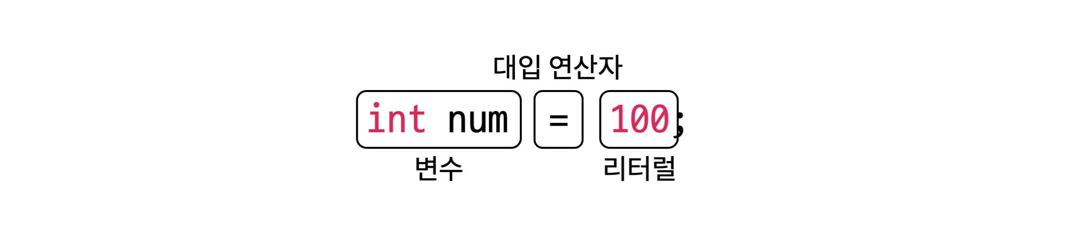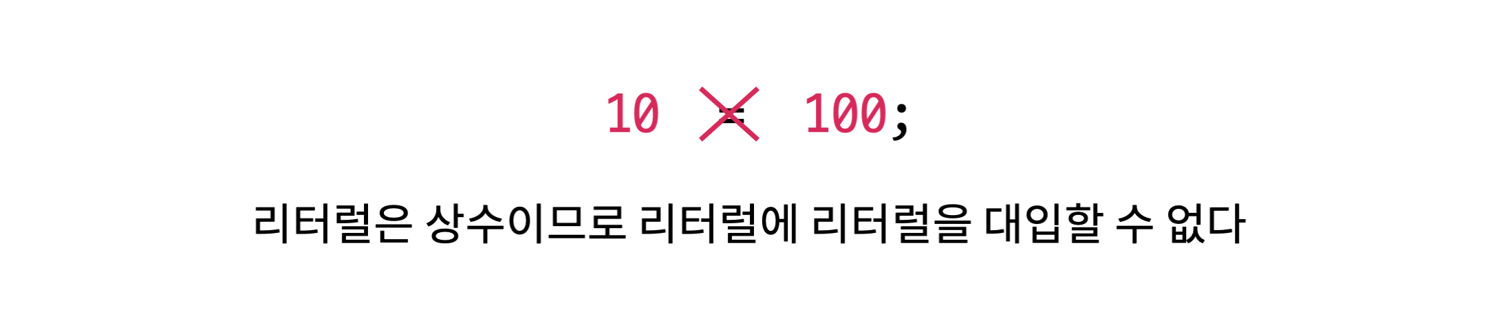 리터럴은 변수가 아니라 상수이므로 리터럴에 리터럴을 대입할 수 없습니다.